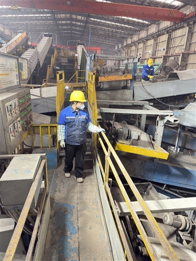 深圳西江环保资源开发利用有限公司垃圾分类细分车间,工人在巡检。
