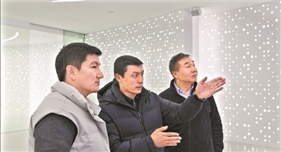 乌兹别克斯坦国家经济合作协会主席法兹利耶夫·法如赫(中)带着考察团实地参观企业。